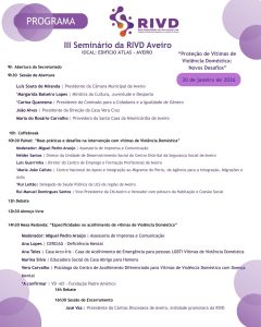 A Rede Especialista em Intervenção com Vítimas de Violência Doméstica no Concelho de Aveiro (RIVD) irá promover a reflexão e o debate sobre os desafios da atualidade na proteção de vítimas de Violência Doméstica, através do III Seminário “Proteção de Vítimas de Violência Doméstica – Novos Desafios”.